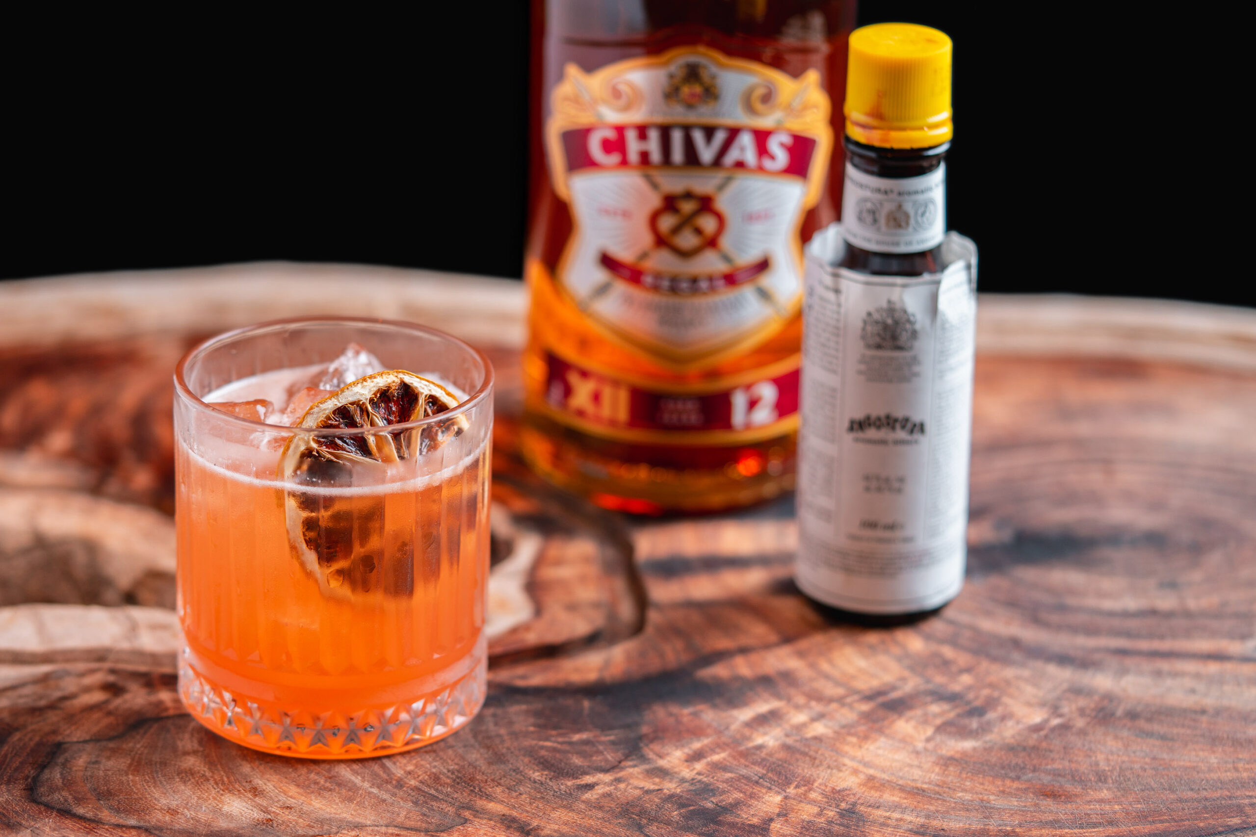 Whisky, infusão de gengibre, suco do limão siciliano e angostura bitter