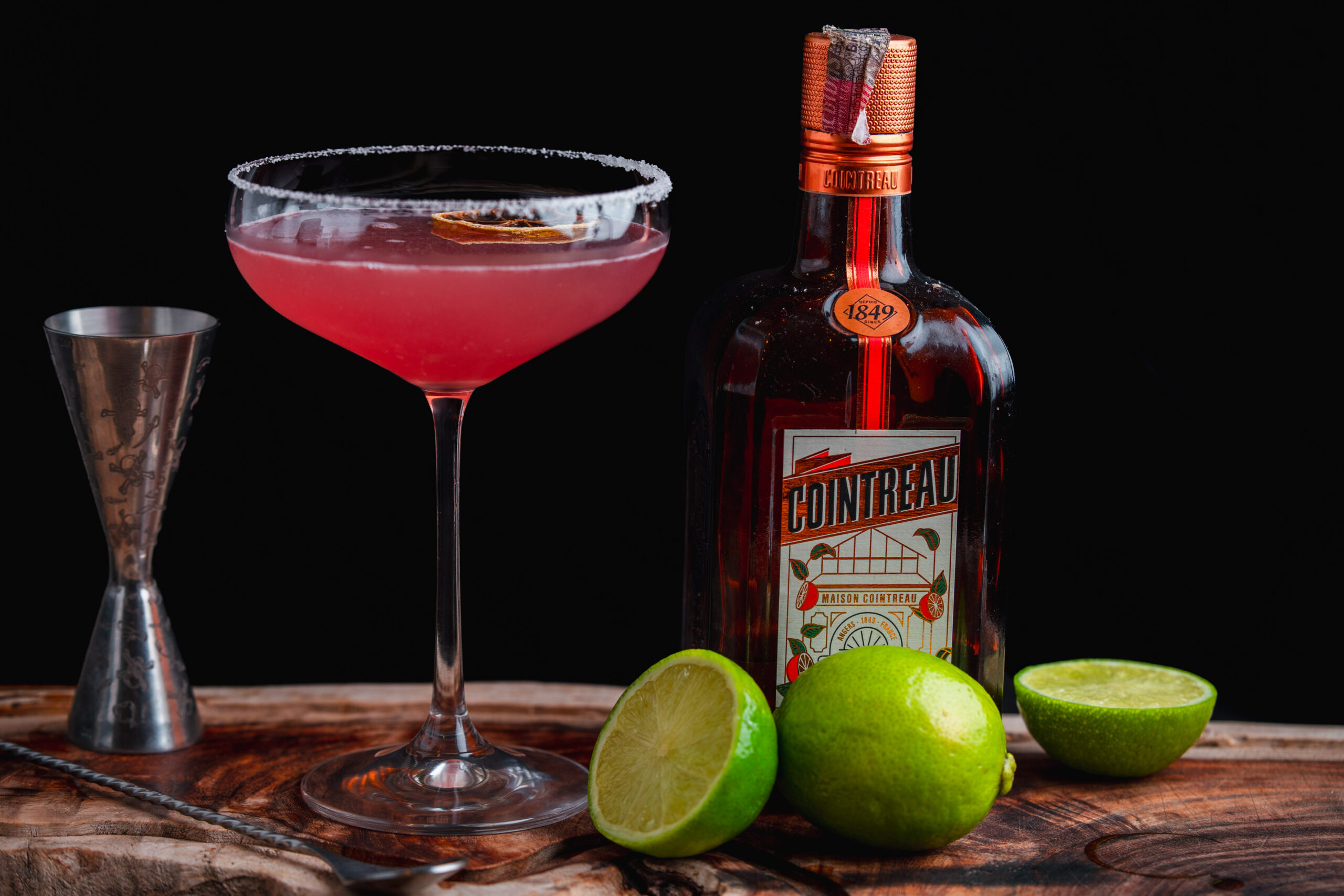Vodka, contreau, suco de limão, infusão de cranberry e borda de sal
